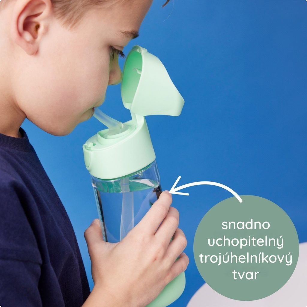 Ergonomický tvar s trojúhelníkovou základnou padne skvěle do drobných ručiček vašich dětí. Silikonové brčko dovolí pít z lahvičky i při mírném naklonění a víčko má držátko pro snadné nošení nebo zavěšení na batoh, kočárek apod. Lahvička se po snadném zmáčknutí "tlačítka" lehce otevře. Spodní brčko lahvičky je pevné. Savička (horní část brčka) je cca 5 mm od konce opatřena "ventilkem", který zabraňuje samovolnému vytékání tekutiny, ale lahvička není výrobcem deklarována jako netekoucí. Při pití je třeba brčko lehce sevřít mezi jazykem a patrem nebo rty a pak už jen sát, jako z klasického brčka.