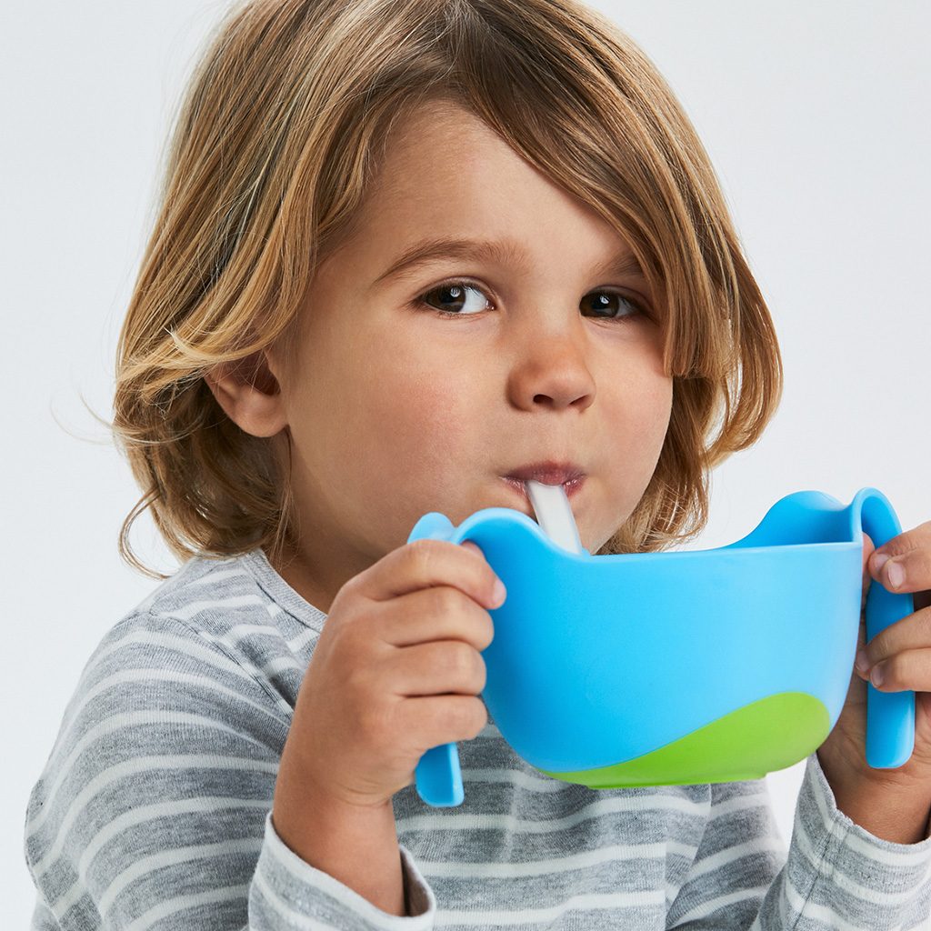 S mističkou a brčkem je jídlo zábava! Je tak jednoduché jíst/pít cereálie s mlékem nebo polévku. Víčko dělá z této mističky bezva krabičku na cestování.