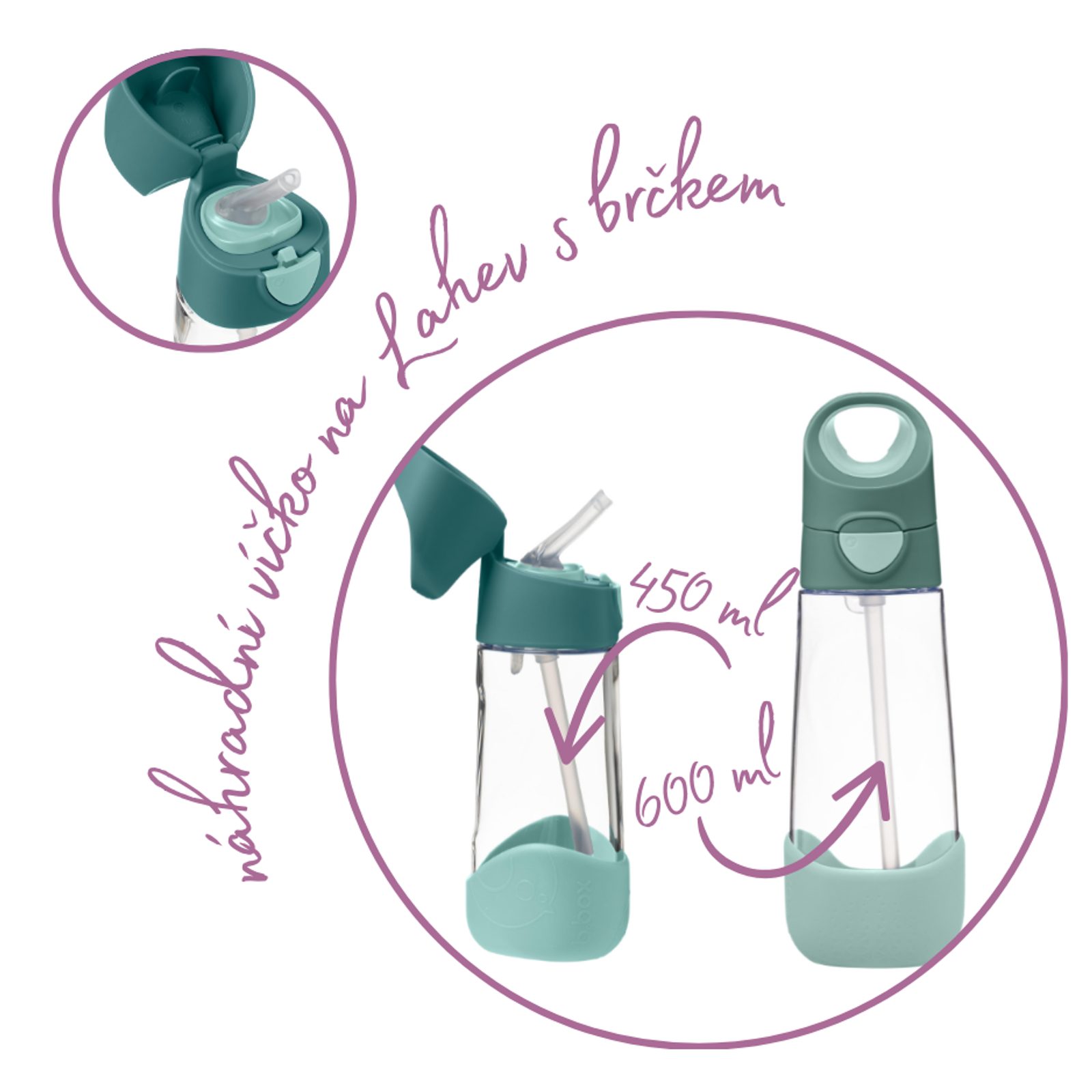 Náhradní víčko je vhodné na základnu lahve na pití s brčkem značky b.box a je plně kompatibilní pro malou lahvičkou o objemu 450 ml nebo větší o objemu 600 ml. Víčko je plně kompatibilní i se základnou lahve se savičkou sport.