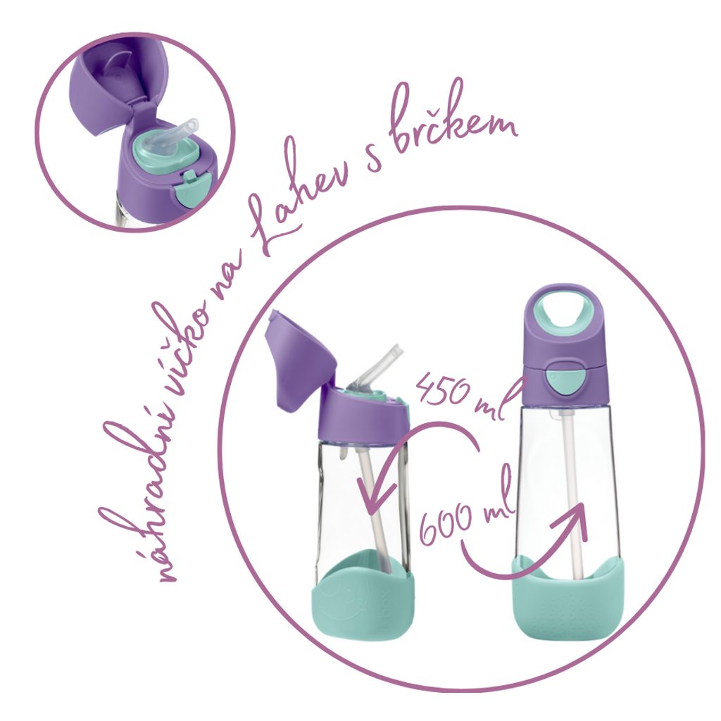 Náhradní víčko je vhodné na základnu lahve na pití s brčkem značky b.box a je plně kompatibilní pro malou lahvičkou o objemu 450 ml nebo větší o objemu 600 ml. Víčko je plně kompatibilní i se základnou lahve se savičkou sport.