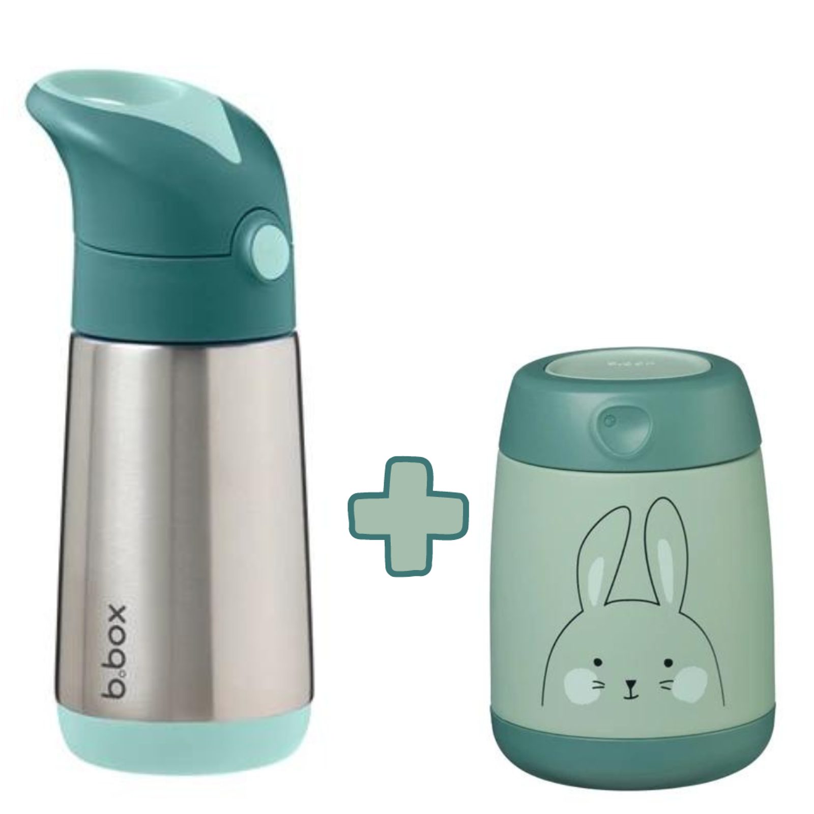 Termoska na pití s brčkem 350 ml v oblíbené barvě emerald forest a Mini termoska na jídlo o objemu 210 ml s obrázkem zajíčka